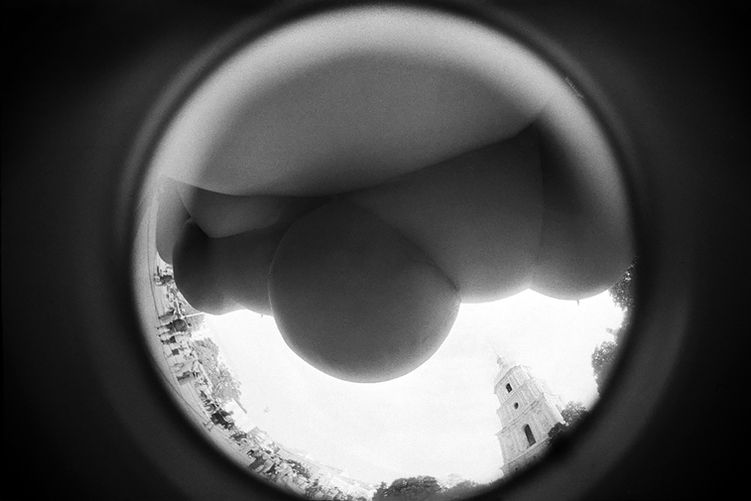 Photographs of the installation “Black Cloud” by Oleksii Sai, Kyiv, 2025